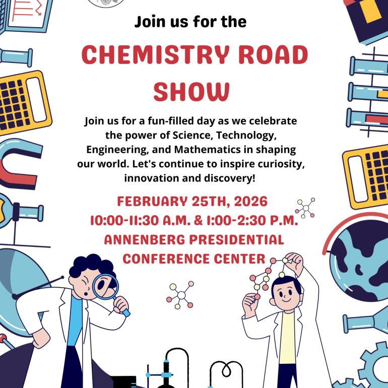 The George H.W. Bush Presidential Library and Museum is pleased to invite you and your students to Texas A&M University's Chemistry Road Show Event on Wednesday, February 25, 2026 at 10:00 -11:30 a.m. or 1:00 - 2:30 p.m. Both sessions will take place at the Annenberg Presidential Conference Center.