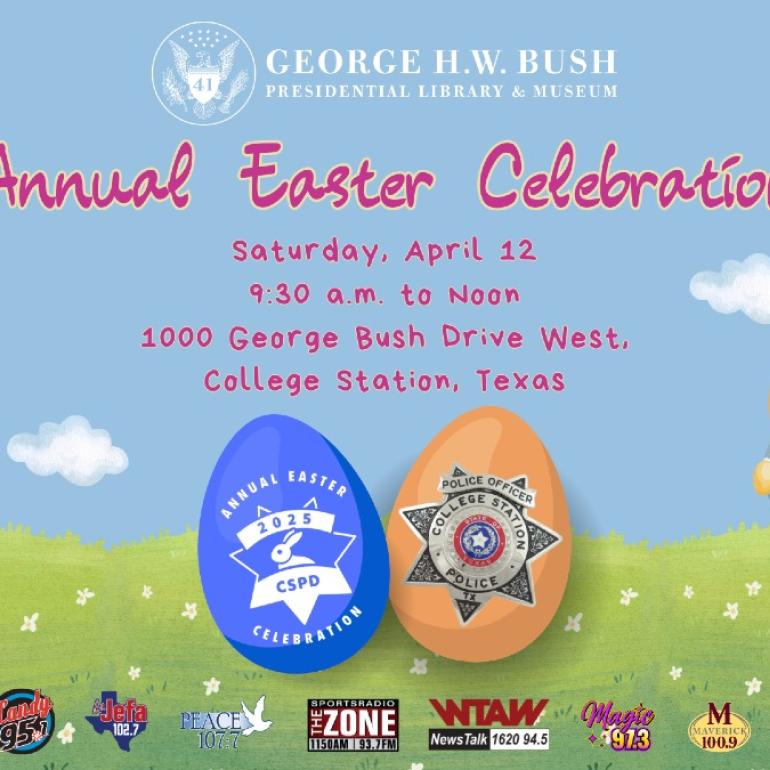 The Annual Easter Celebration, modeled after the annual White House Easter Egg Roll, has been hosted by the Bush Library and Museum in partnership with the College Station Police Department since 1999, but the event has a long tradition in College Station. The police department has been putting on this event since 1982.