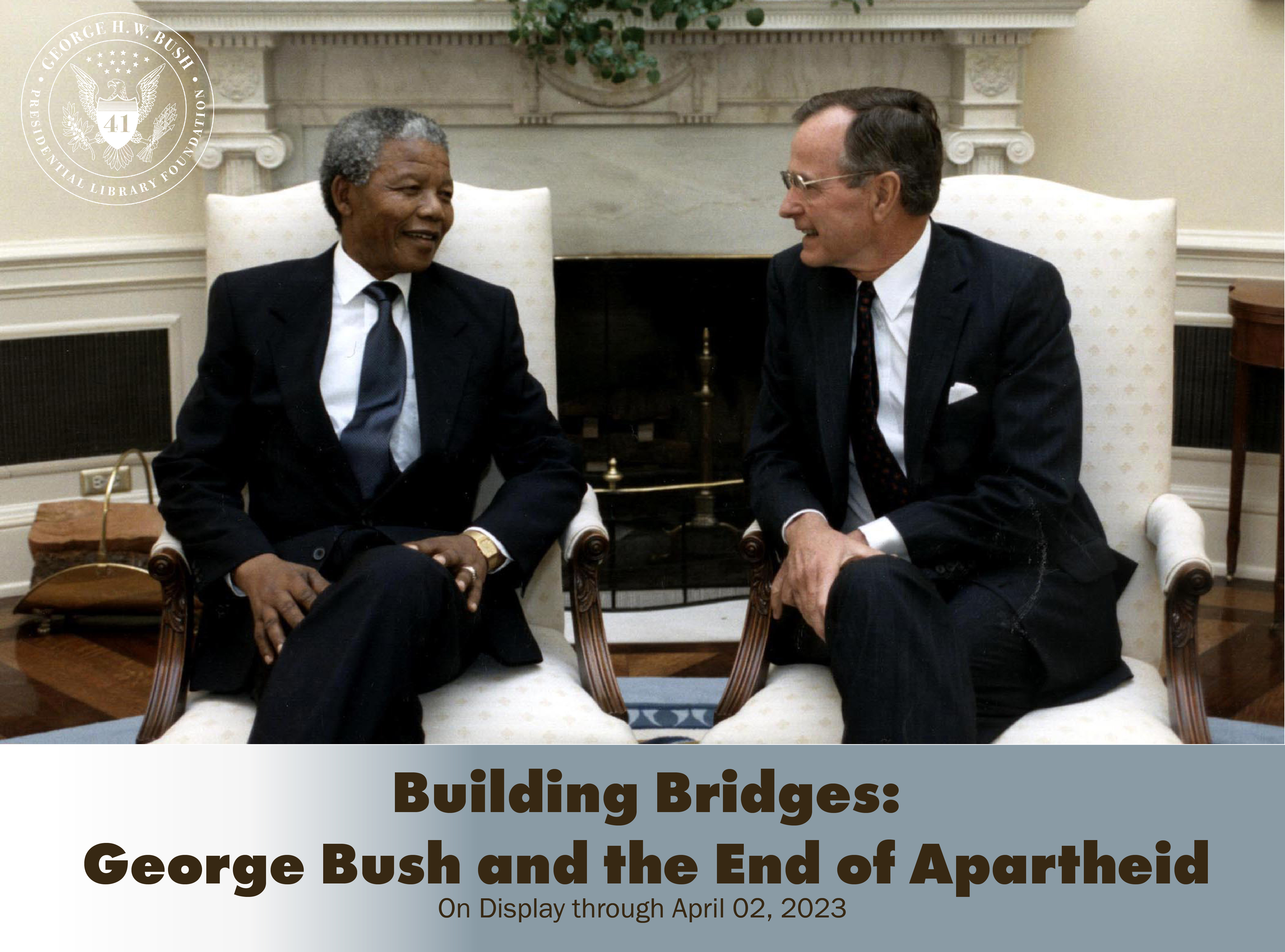 Building Bridges: George Bush and the End of Apartheid explores the United States' diplomatic efforts during the final years of the apartheid regime in South Africa. Featuring newly declassified documents, this exhibit gives visitors a new insight into the behind-the-scenes conversations between George Bush and F.W. De Klerk, Nelson Mandela, and other leaders in the region of Southern Africa during this pivotal time in world history. It is open now in the Fidelity Gallery through April 2, 2023.