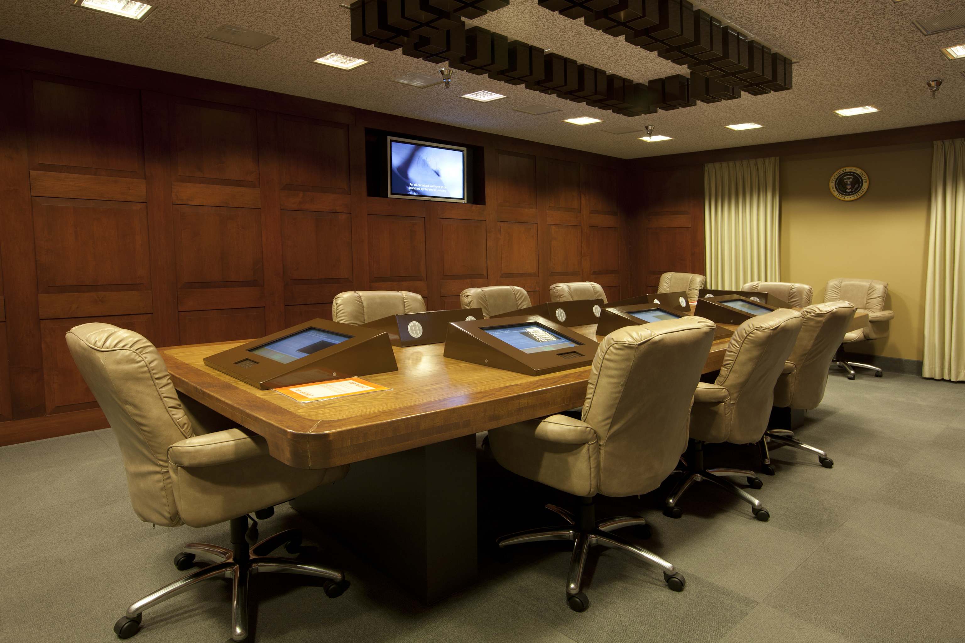 Have you ever wondered what it would be like to advise the President on important decisions? Here is your chance to experience the White House Situation Room, where the President is briefed by his advisors. In the Situation Room, you can learn about the events and decisions that led up to the Persian Gulf War.