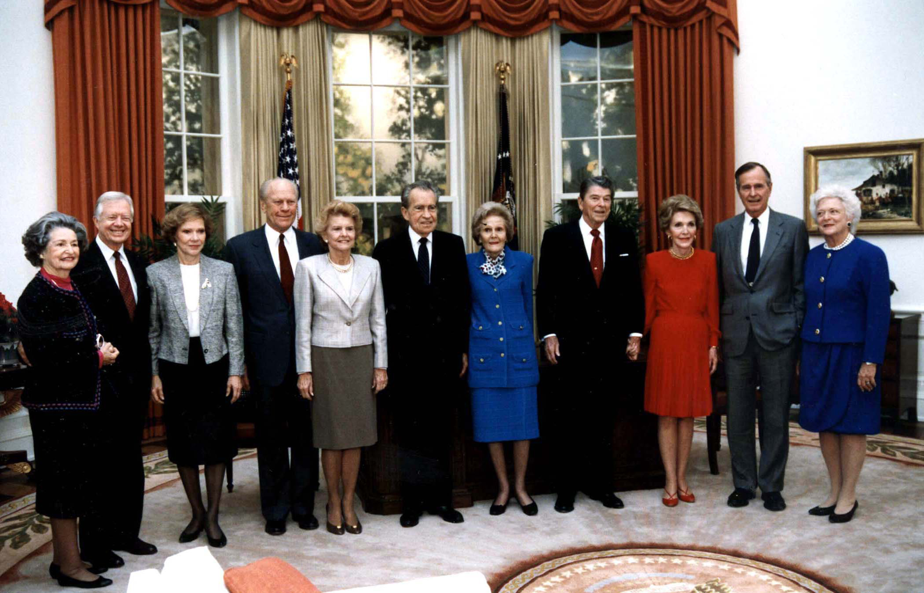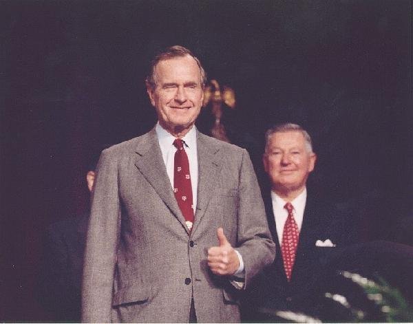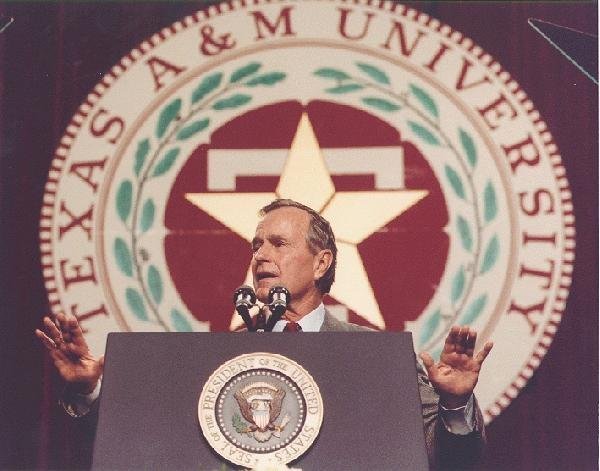 Original caption: President George Bush signs into law the Americans with Disabilities Act of 1990 on the South Lawn of the White House. L to R, sitting: Evan Kemp, Chairman, Equal Employment Opportunity Commission, Justin Dart, Chairman, President's Committee on Employment of People with Disabilities. L to R, standing: Rev. Harold Wilke and Swift Parrino, Chairperson, National Council on DisabilityView in the National Archives Catalog