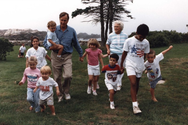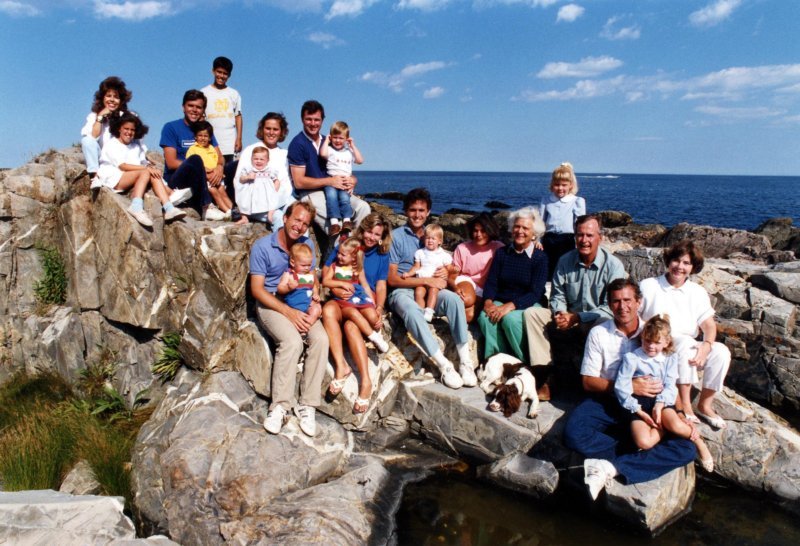 Left to right, back row: Neil, Jeb. Front row: Marvin, Barbara, Doro, George, George W.View in the National Archives Catalog