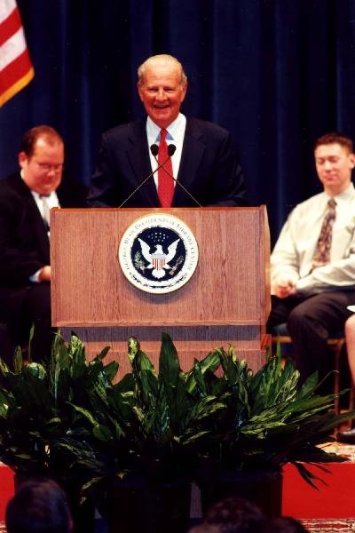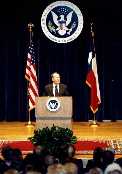 CA200230.01-11 - Andrew Card, Chief of Staff to President George W. Bush, presents the Kay and Britt Rice Lecture at the George Bush Presidential Library Conference Center, Texas A&M University, College Station, TX. 18 Nov 02View in the National Archives Catalog