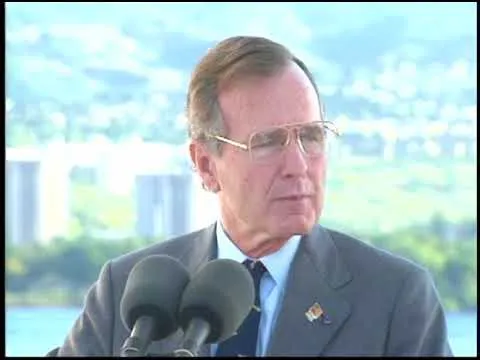 MT2990 and MT2991 President Bush's Speech at Kilo 8 Pier, Pearl Harbor, HI, on the 50th anniversary of the attack, 07 December 1991. This is video footage of President Ge...Show moreMT2990 and MT2991 President Bush's Speech at Kilo 8 Pier, Pearl Harbor, HI, on the 50th anniversary of the attack, 07 December 1991. This is video footage of President George Bush during a ceremony at the Kilo 8 Pier commemorating the 50th anniversary of the Japanese attack on Pearl Harbor, Hawaii, 07 December 1991. This footage is official public record produced by the White House Television (WHTV) crew. Show less -