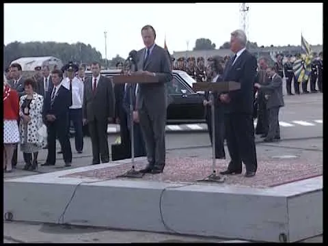 MT2158 - Trip to Moscow and Kiev, Arrival in Kiev - 01 August 1991. This is video footage of President George Bush arriving in Kiev and remarks from President Bush and Ch...Show moreMT2158 - Trip to Moscow and Kiev, Arrival in Kiev - 01 August 1991. This is video footage of President George Bush arriving in Kiev and remarks from President Bush and Chairman Kravchuk during the arrival ceremony. This footage is official public record produced by the White House Television (WHTV) crew. Show less -