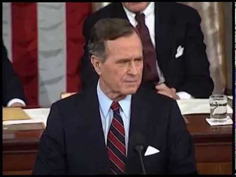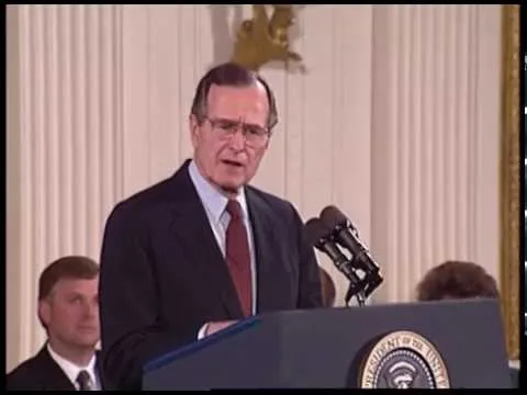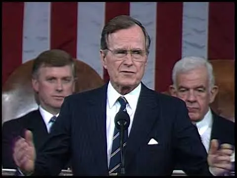 MT1461 and MT1462 Address Before a Joint Session of Congress Regarding the End of the Gulf War, 06 March 1991. This is video footage of President George Bush delivering a...Show moreMT1461 and MT1462 Address Before a Joint Session of Congress Regarding the End of the Gulf War, 06 March 1991. This is video footage of President George Bush delivering an address before a joint session of Congress regarding the end of the Gulf War, on March 6, 1991. This footage is official public record produced by the White House Television (WHTV) crew. Show less -