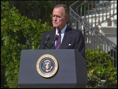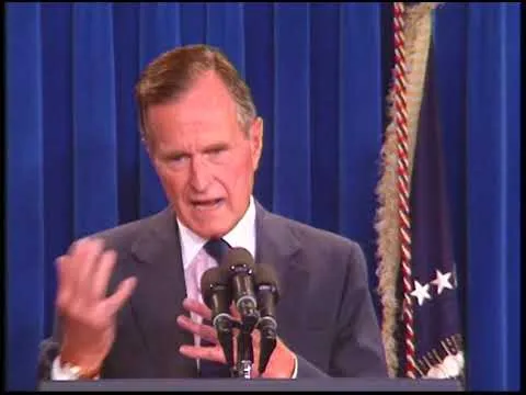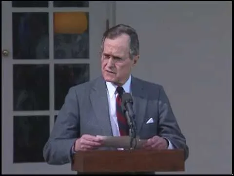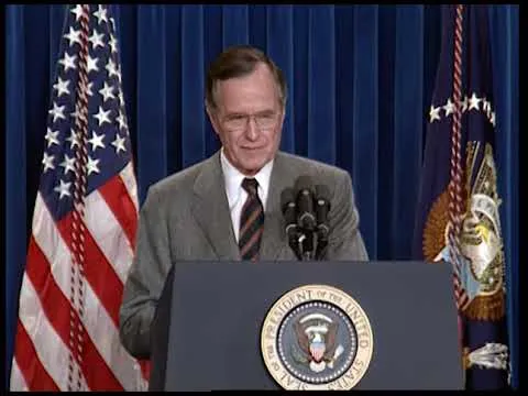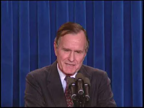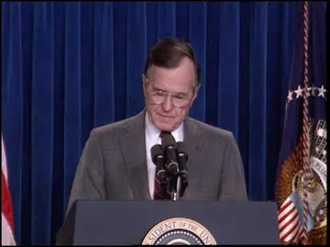 MT1349 President Bush Addresses the Nation Regarding the Start of the Air Campaign Against Iraqi Forces, 16 January 1991. This is footage of President George Bush address...Show moreMT1349 President Bush Addresses the Nation Regarding the Start of the Air Campaign Against Iraqi Forces, 16 January 1991. This is footage of President George Bush addressing the nation regarding the start of the air campaign against Iraqi forces on 16 January 1991. This footage is official public record produced by the White House Television (WHTV) crew. Show less -