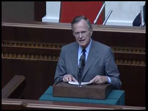 MT2147 - Trip to Moscow and Kiev, Address - 30 July 1991. This is video footage of President George Bush addressing the Moscow Institute of International Studies. This f...Show moreMT2147 - Trip to Moscow and Kiev, Address - 30 July 1991. This is video footage of President George Bush addressing the Moscow Institute of International Studies. This footage is official public record produced by the White House Television (WHTV) crew. Show less -