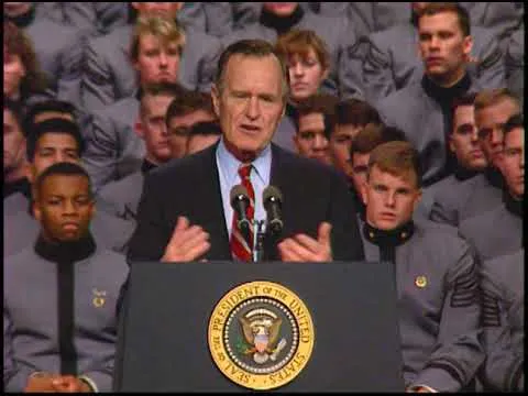 MT3795 and MT3796 Address to the US Military Academy at West Point - 05 January 1993. This is video footage of President George Bush delivering the commencement address a...Show moreMT3795 and MT3796 Address to the US Military Academy at West Point - 05 January 1993. This is video footage of President George Bush delivering the commencement address at the United States Military Academy at West Point, New York on 05 January 1993. This footage is official public record produced by the White House Television (WHTV) crew. Show less -