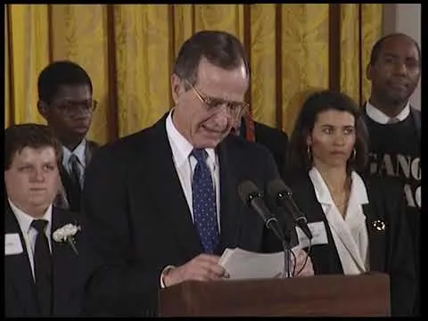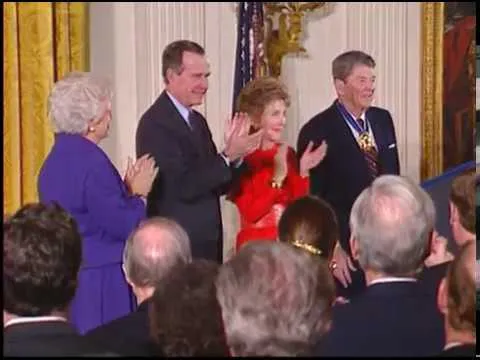 MT3806 Presentation of the Presidential Medal of Freedom to Former President Ronald Reagan, 13 January 1993. This is video footage of President George Bush presenting the...Show moreMT3806 Presentation of the Presidential Medal of Freedom to Former President Ronald Reagan, 13 January 1993. This is video footage of President George Bush presenting the Presidential Medal of Freedom to former President Ronald Reagan in the East Room of the White House, on 13 January 1993. This footage is official public record produced by the White House Television (WHTV) crew. Show less -